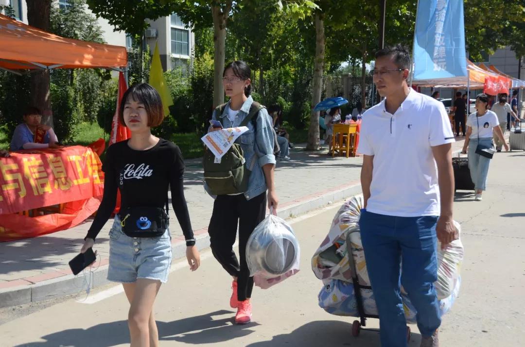迎新工作如火如荼,到處都是忙碌的身影。學生會的學長學姐們不厭其煩地給新生、家長回答著他們提出的各種問題。并主動幫著拎行李,帶領(lǐng)他們?nèi)フJ領(lǐng)宿舍,一路上談笑風生,其樂融融。