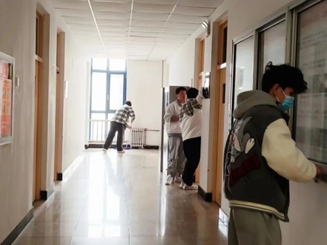 早上,我系師生準(zhǔn)時(shí)到達(dá)指定地點(diǎn)領(lǐng)取打掃工具后,大家分工明確,鉚足干勁,分別對(duì)鯤鵬教學(xué)樓四樓教室及樓道內(nèi)公告欄、扶手等公共物品進(jìn)行清掃,并擦拭干凈。大家擼起袖子,不辭辛勞,把教室周邊衛(wèi)生環(huán)境打掃得一塵不染,打造出了一個(gè)干凈、溫馨、和諧的教學(xué)環(huán)境。