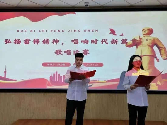 伴隨著動(dòng)聽(tīng)的音樂(lè)旋律,比賽在辦公室全體成員共同獻(xiàn)唱了歌曲《學(xué)習(xí)雷鋒好榜樣》后正式拉開(kāi)帷幕。隨后,主持人為大家宣布本次比賽的形式與規(guī)則。接著,參賽選手們大放異彩,相繼演唱了自己精心準(zhǔn)備的歌曲,大家各有千秋、獨(dú)具特色,以動(dòng)人的歌詞來(lái)表達(dá)對(duì)雷鋒同志的敬佩,慷慨激昂的歌聲唱出了新時(shí)代 青年向上的心態(tài)和蓬勃的朝氣。比賽進(jìn)行的如火如荼,學(xué)生們熱情高漲,現(xiàn)場(chǎng)不時(shí)爆發(fā)出熱烈的掌聲。