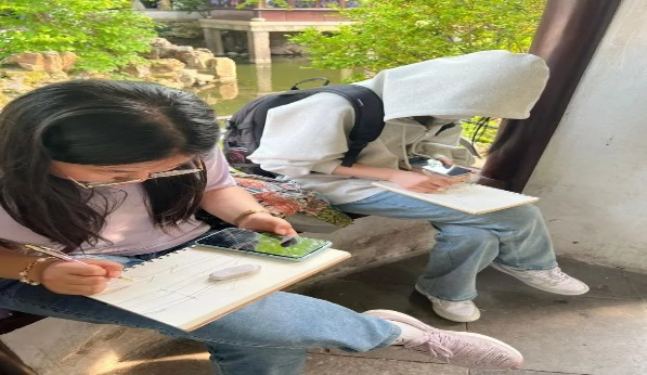 在蘇州留園、拙政園、網(wǎng)師園、獅子林等處,學(xué)生們進(jìn)行了園林建筑測繪,園林效果圖速寫,深刻感受“不出城廓而獲山水之怡,身居鬧市而得林泉之趣”的古典意境。