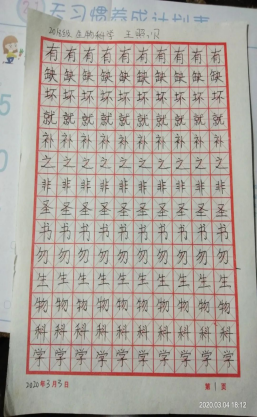 在新型冠狀病毒感染引發(fā)的肺炎疫情時(shí)期下,我院積極響應(yīng)教育部“停課不停學(xué)”號召,在云端授課的同時(shí),堅(jiān)持豐富學(xué)生第二課堂,開展對培養(yǎng)具備綜合素質(zhì)的師范生的訓(xùn)練。2020年3月2日起,我院組織一至三年級師范類生物科學(xué)專業(yè)學(xué)生每天完成一百個(gè)正楷字的撰寫,以此來加強(qiáng)對我院師范生教師基本技能的訓(xùn)練,鍛煉我院師范生教學(xué)實(shí)踐能力,提高其自身的價(jià)值修養(yǎng)。