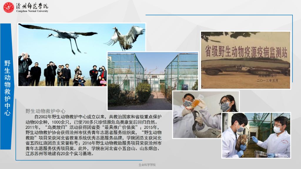 專業(yè)特色及優(yōu)勢:以野生動物救護中心、生物標本館和地方中學為實踐教學平臺,構(gòu)建以“以學生為中心”的課堂和實踐教學體系,培養(yǎng)學生科學精神、創(chuàng)新意識和實踐能力。