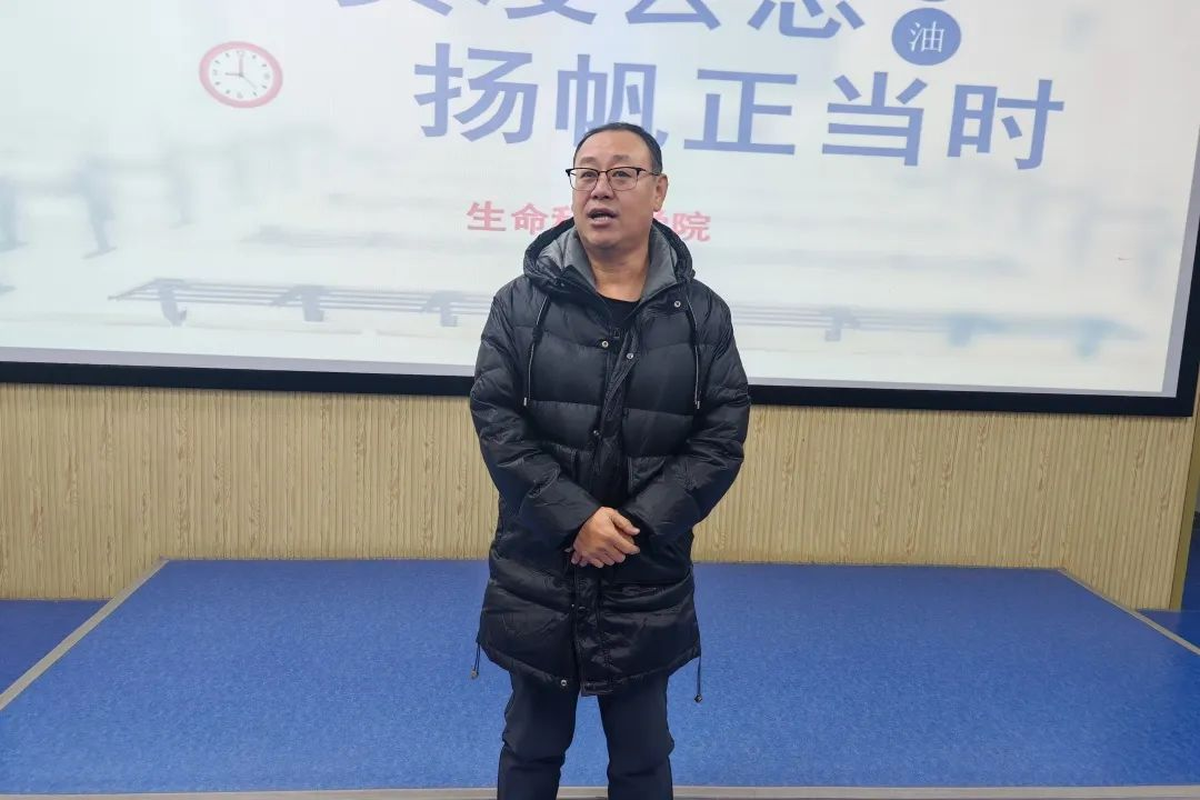 為激發(fā)學(xué)生們的考研熱情,明確考研目標(biāo),掌握考研技巧,2024年12月18日,生命科學(xué)學(xué)院于鯤鵬教學(xué)樓第三階梯教室召開“不負(fù)凌云志,揚(yáng)帆正當(dāng)時(shí)”主題考研動(dòng)員大會(huì)。本次大會(huì)由馬一鳴老師主持,院長(zhǎng)劉福春,黨總支書記劉汝豐,黨總支副書記馬坤和副院長(zhǎng)宋立立出席,我院考研學(xué)子參加。