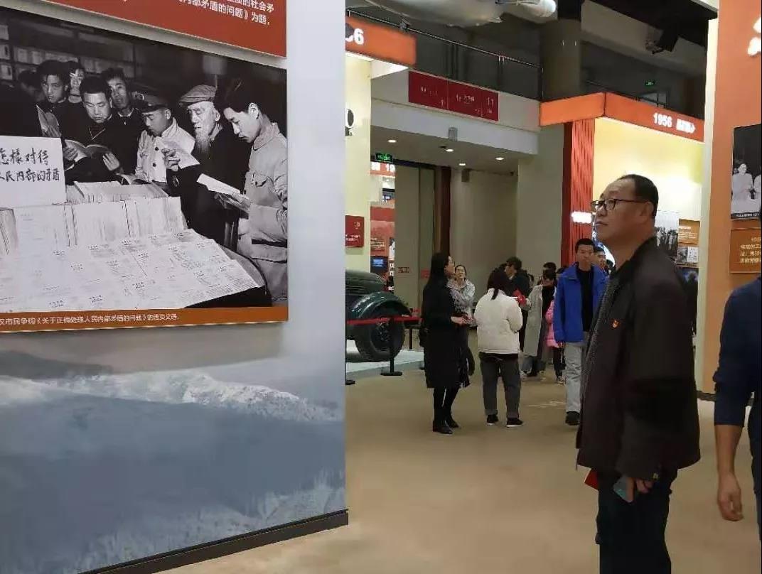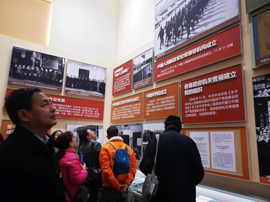 此次展覽共有五部分,從展覽開始的視頻到屹立東方、改革開放、走向復(fù)興再到人間正道,記錄了中華人民共和國七十年漫長歲月里的偉大歷程。觀展過程中,大家漫步于歷史長廊中,感受中華人民共和國成立七十周年以來中國從改革開放到如今走向復(fù)興的滄桑巨變與輝煌成就,感慨從當(dāng)初的科技落后到如今的科技強(qiáng)國,從1949年的開國盛典,到第一條鐵路成渝鐵路建成通車,到2008年的第一次北京舉辦奧運(yùn)會,再到2018年世界最長跨海大橋港珠澳大橋通車……中國正在用無數(shù)傲人的成績,向世人宣告,中國在世界東方昂首屹立。
