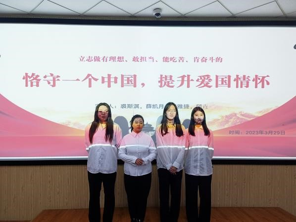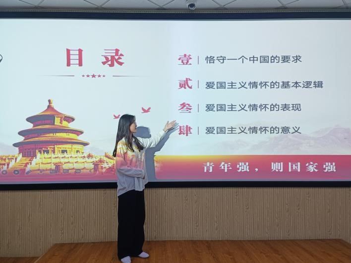 團(tuán)課伊始,主持人通過闡述愛國主義情懷的基本邏輯、表現(xiàn)形式和現(xiàn)實(shí)意義,向同學(xué)們表明了要恪守一個中國原則,引導(dǎo)同學(xué)們要堅定理想信念,自覺提升愛國主義情懷,立志做有理想、敢擔(dān)當(dāng)、能吃苦、肯奮斗的新時代好青年。