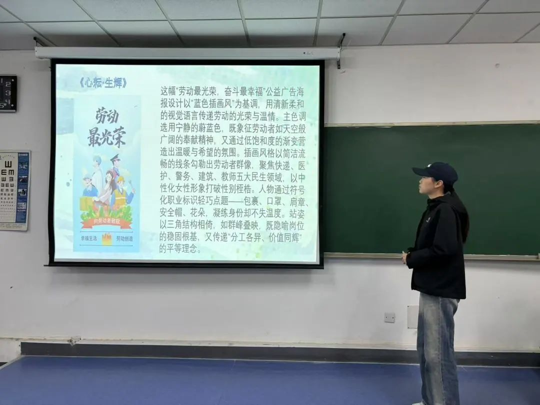 比賽開始前,主持人宣讀比賽規(guī)則和評分標準,向同學(xué)們闡述勞動奮斗精神在新時代的重要意義,并呼吁同學(xué)們積極為社會做出奮斗和勞動。比賽過程中,同學(xué)們圍繞“勞動最光榮,奮斗最幸福”這一主題,用豐富的視頻和精美海報訴說著新時代下的勞動故事,用強烈熾熱的情感表達對勞動精神的歌頌與踐行,參賽選手解說視頻的創(chuàng)意和海報的設(shè)計理念贏得了臺下評委和觀眾們的陣陣掌聲。