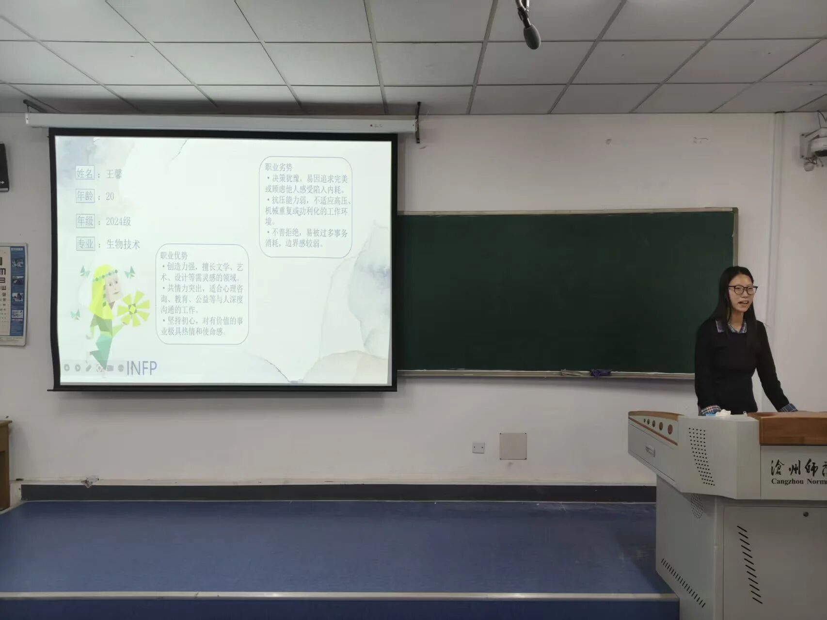 大賽伊始,主持人首先向同學們闡述了本次比賽的舉行目的,宣讀了比賽要求,并詳細介紹了賽事規(guī)則和評分標準。隨后,參賽選手依次登場,其作品緊扣專業(yè)學習與社會實踐就業(yè)核心,以成長賽道和就業(yè)賽道為雙軸深入探索,既立足生命科學專業(yè)知識體系,又融入科研實踐、校園工作、社會實習等多元經(jīng)歷。比賽現(xiàn)場,參賽選手們通過內(nèi)容翔實、邏輯清晰、構(gòu)思新穎的PPT展示,生動闡述個人職業(yè)目標與實施路徑,既彰顯了對未來的美好憧憬,又充分體現(xiàn)了當代青年學子的責任擔當與奮進姿態(tài)。