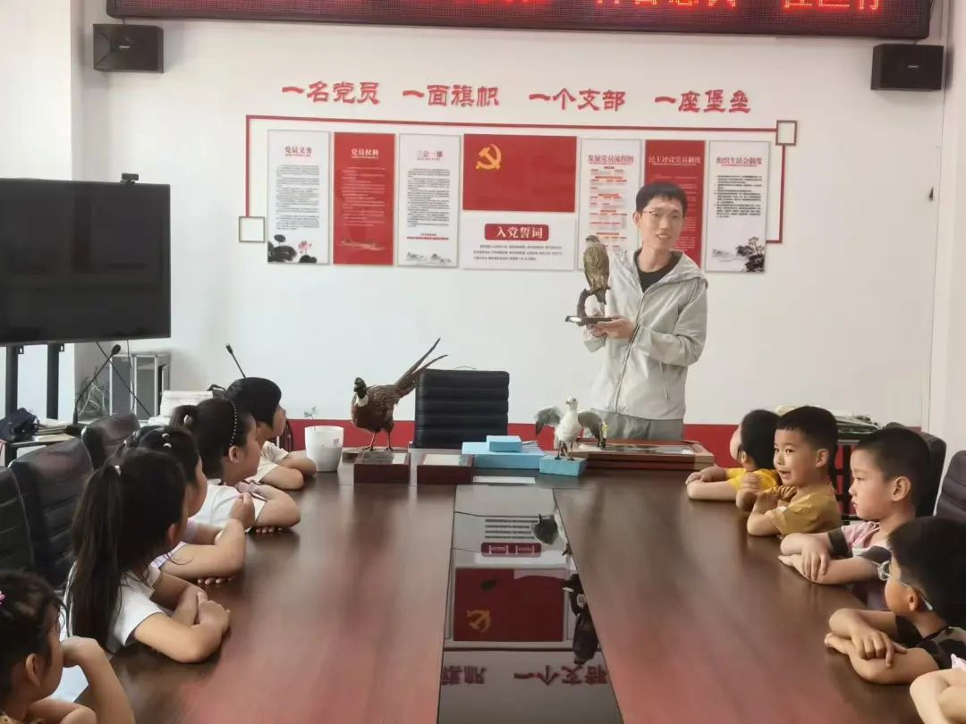 活動伊始,高文彬老師和寇冠群老師借啟動儀式傳遞“科技賦能生活”理念,構(gòu)建校地合作機(jī)制,搭建科普資源共享平臺。隨后,小學(xué)生參觀生命科學(xué)展示區(qū)的鳥類、昆蟲和植物等標(biāo)本,現(xiàn)場氛圍熱烈。活動中,教師團(tuán)隊(duì)以標(biāo)本為教學(xué)媒介,生動闡釋生物多樣性科學(xué)內(nèi)涵,突破知識傳播的空間與形式局限;并結(jié)合圖文資料開展動植物知識講解,并針對提問細(xì)致答疑,助力青少年構(gòu)建系統(tǒng)性科學(xué)思維框架。